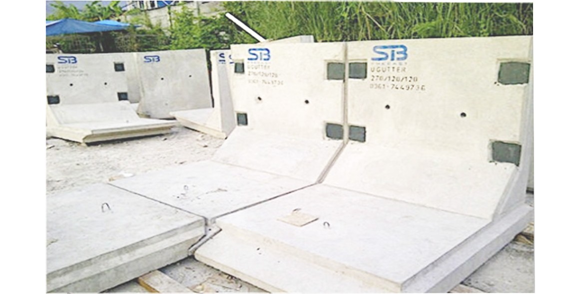 L-Gutter merupakan tipe saluran beton pracetak pengembangan dari box culvert dan uditch. Jika saluran tidak bisa didesign lagi menggunakan uditch maupun box culvert, maka design saluran bisa dipecah menjadi L-gutter dan plat. Tujuan dari pemecahan ini adalah untuk memudahkan pengangkutan material dan handling. Kerapian pemasangan saluran beton pracetak type ini sangat tergantung pada rapi tidaknya (kerataan) lantai kerja L-Gutter.